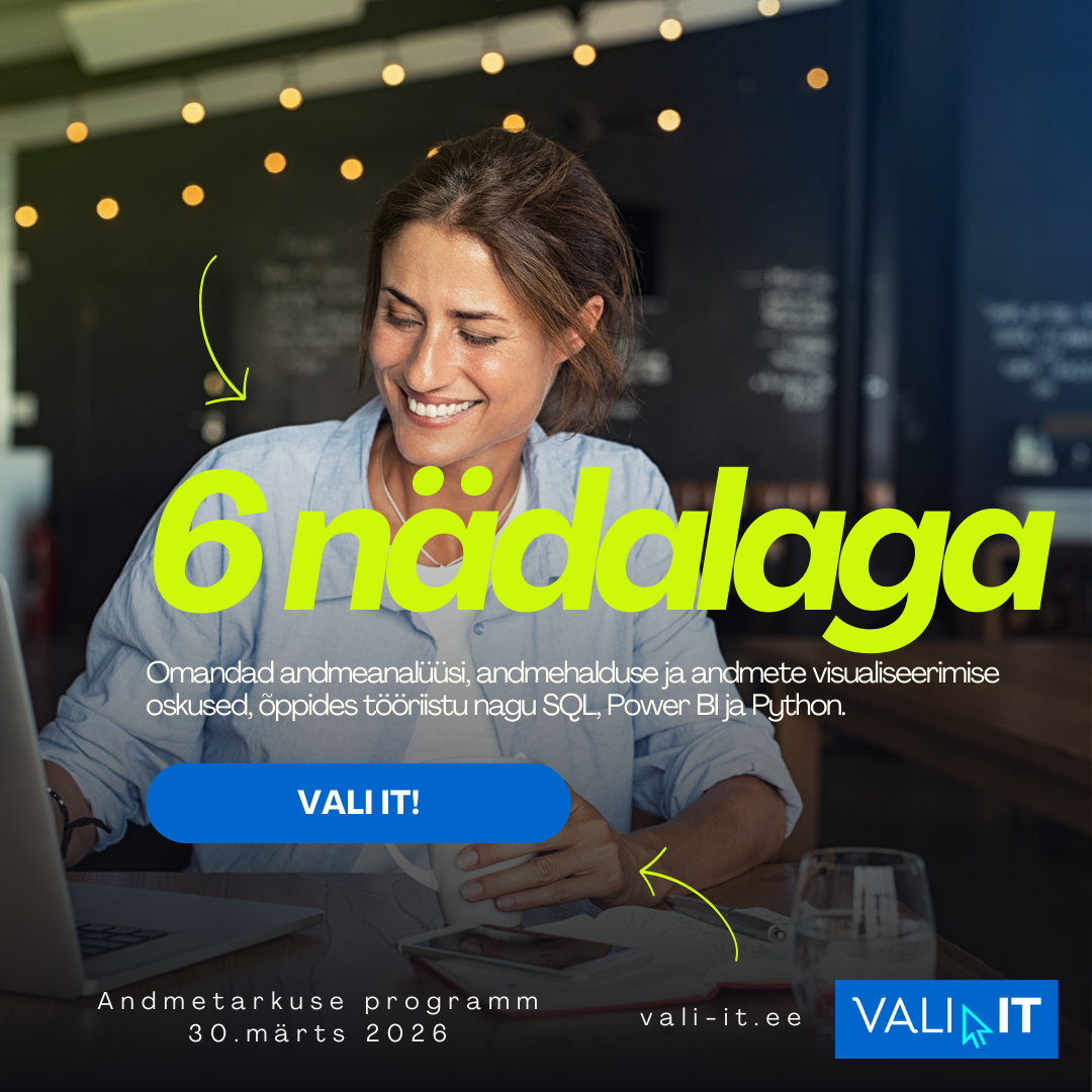 Omandad andmeanalüüsi, andmehalduse ja andmete visualiseerimise oskused, õppides tööriistu nagu SQL, Power BI ja Python.